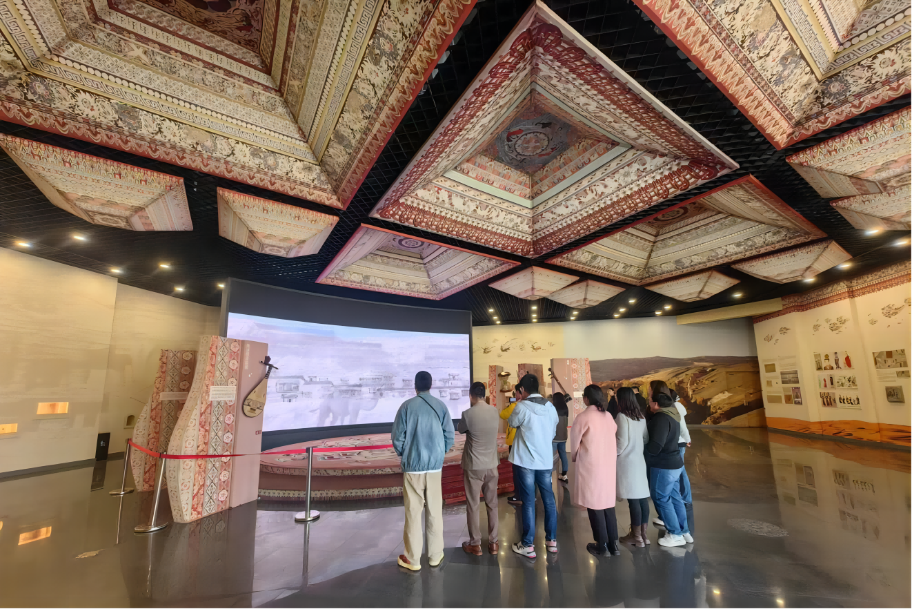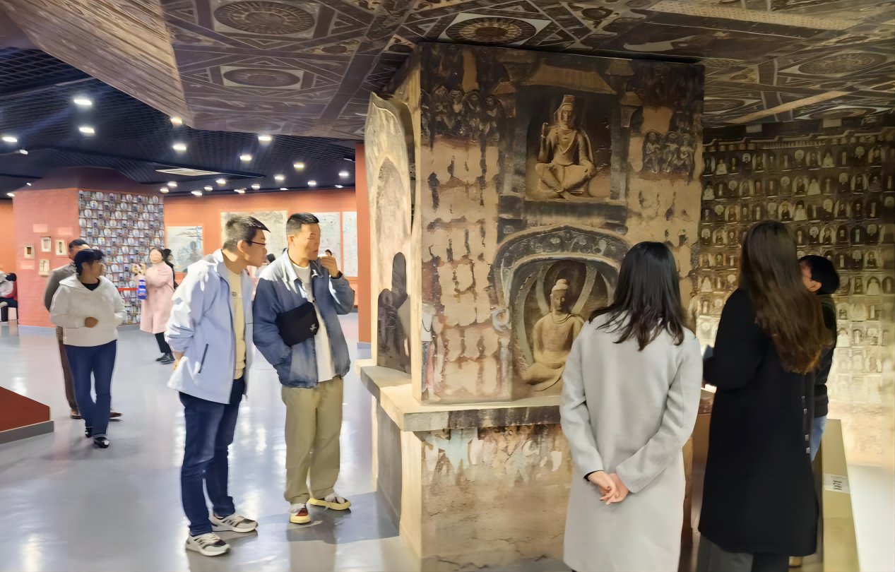 2023年10月23日,我公司組織員工在敦煌研究院蘭州分院敦煌藝術(shù)館內(nèi)參觀“覺(jué)色敦煌 莫高精神”敦煌石窟藝術(shù)展。走進(jìn)敦煌藝術(shù)館,無(wú)論是抬頭可見(jiàn)的藻井天花板,抑或是墻角邊印著莫高窟窟區(qū)的全景照片,每一處細(xì)節(jié)都被濃厚的敦煌元素所覆蓋。在這里我們可以不受外界打擾,在感興趣的壁畫(huà)前安靜地、耐心地去觀賞每一處細(xì)節(jié)。